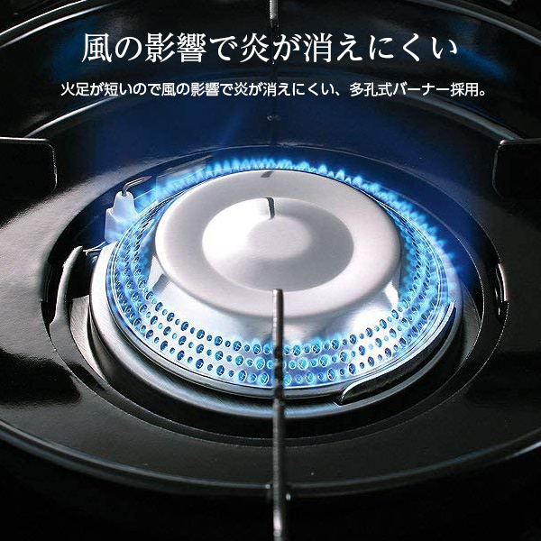 風が吹いても炎が消えにくい多孔式バーナーを採用しています。