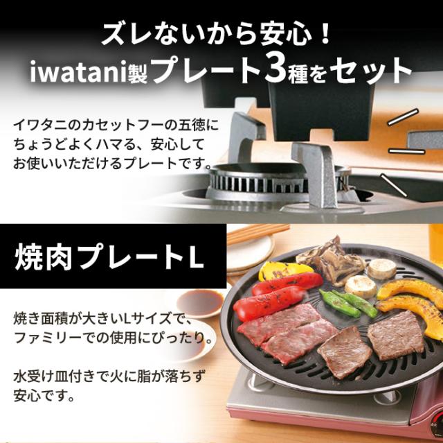 プレートは同メーカー品ならではの安心設計セットのプレートはいずれも底面のくぼみがイワタニ製のカセットコンロのゴトクにピッタリはまるので、ずれにくく、安全に調理できます。