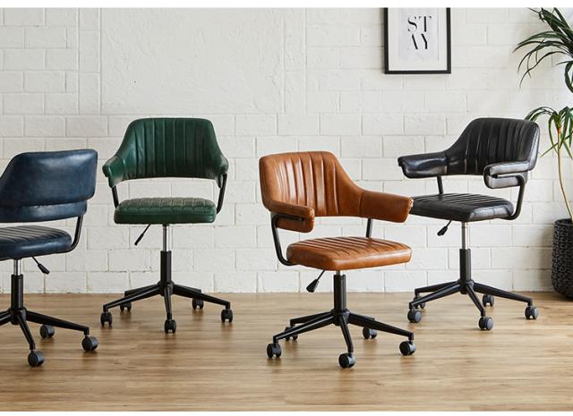 ガス圧昇降 ヴィンテージデスクチェア 1脚単品 GABBY 4色対応 デスクチェア オフィスチェアー チェア チェアー 椅子 イス いす デスク オフィス 高さ調節 肘掛け キャスター付き 回転 昇降式 レザー 合皮 おしゃれ