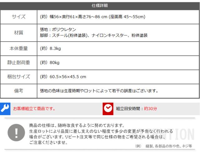 脚部:スチール(粉体塗装)・ナイロンキャスター>