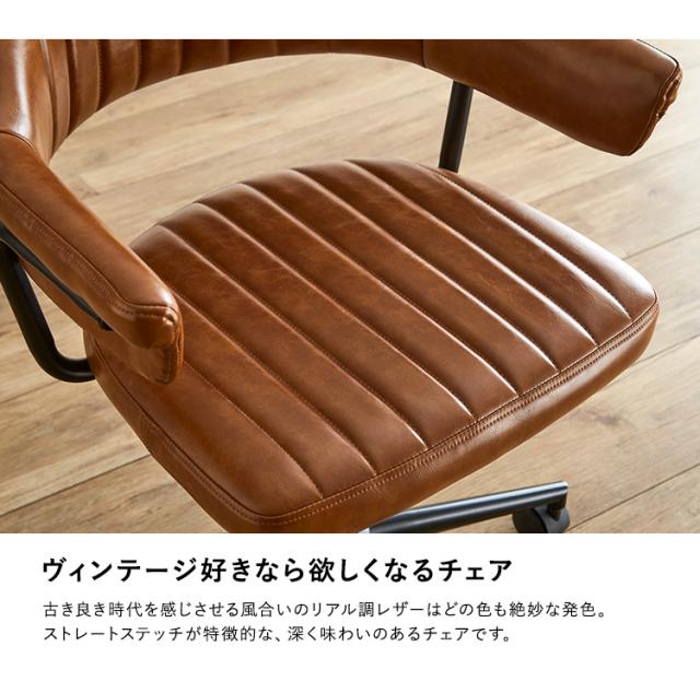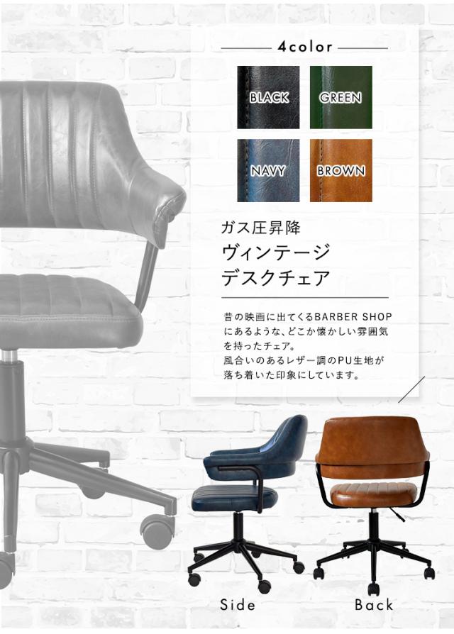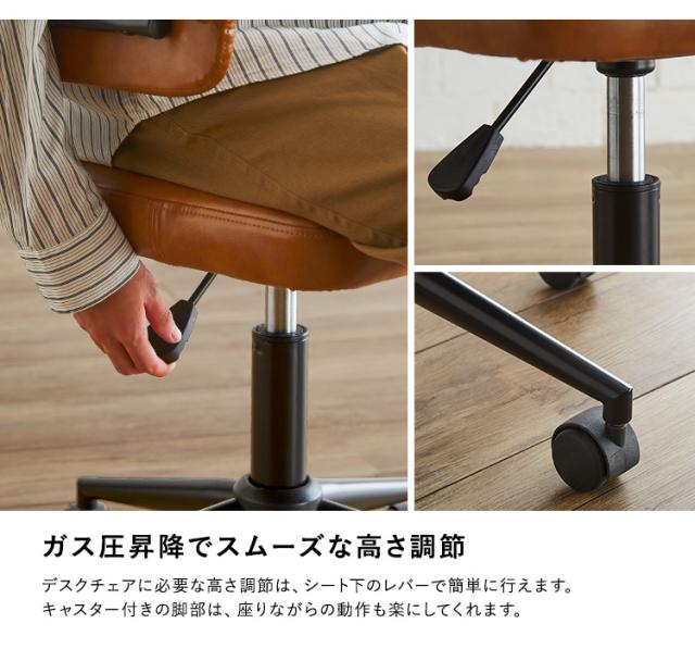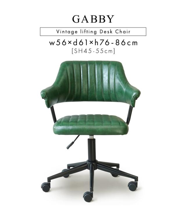 ガス圧昇降 ヴィンテージデスクチェア 1脚単品 GABBY 4色対応 デスクチェア オフィスチェアー チェア チェアー 椅子 イス いす デスク オフィス 高さ調節 肘掛け キャスター付き 回転 昇降式 レザー 合皮 おしゃれ