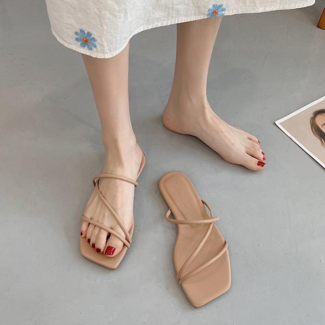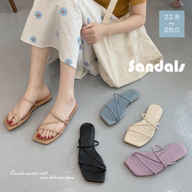 スクエアトゥ ぺたんこ サマー 人気 歩きやすい お洒落 シンプル