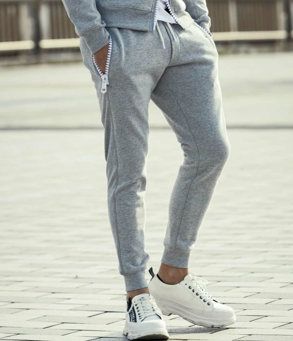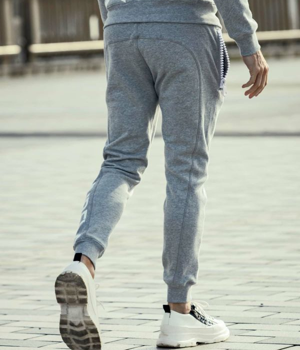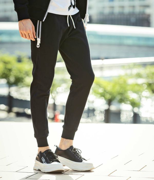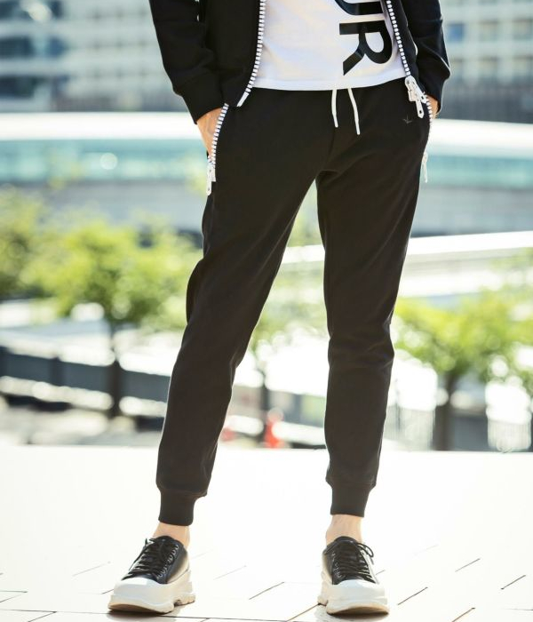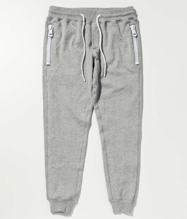 ポケットに施した大きなファスナーが定番のスウェットパンツに他とは違う遊び心をプラスします。