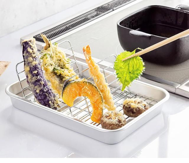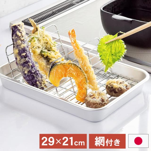日本製 油が切れる 立てるアミ付きバット 29×21cm アルミ製 揚げ物名人 S バット トレー 保存用 保存容器 揚げ物 天ぷら 水切り 角型 深型 アルミ製 バットセット
