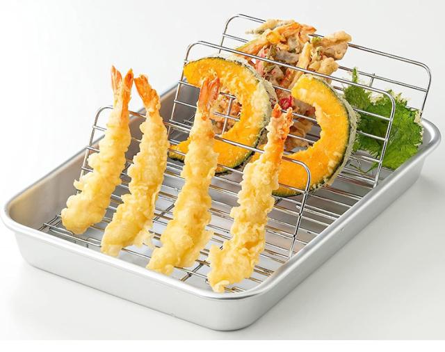 日本製 油が切れる 立てるアミ付きバット 31.7×23cm アルミ製 揚げ物名人 M バット トレー 保存用 保存容器 揚げ物 天ぷら 水切り 角型 深型 アルミ製 バットセット【送料無料】