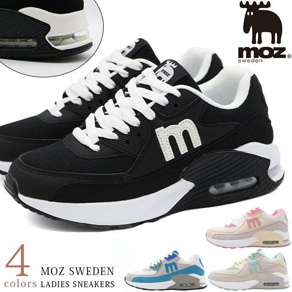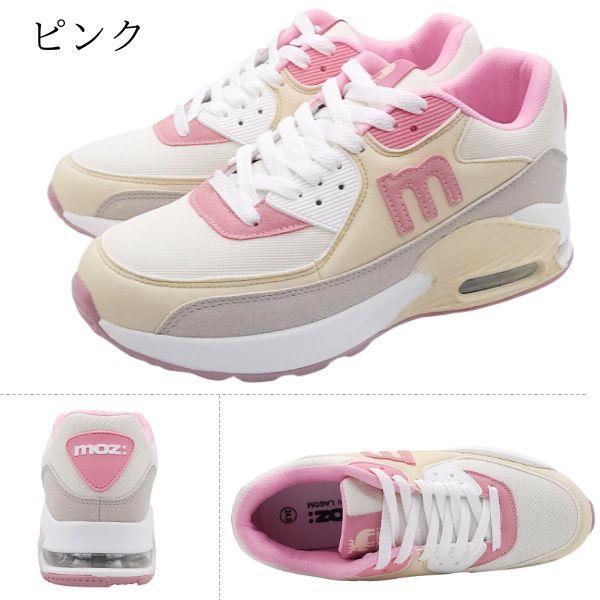 モズ スニーカー レディース 靴 エアーソール エアークッション 衝撃吸収 軽量 軽い おしゃれ かわいい 人気 カジュアル 取り外せるインソール 秋 黒 ブラック ホワイト ピンク ブルー ミント moz MZ-828-AR
