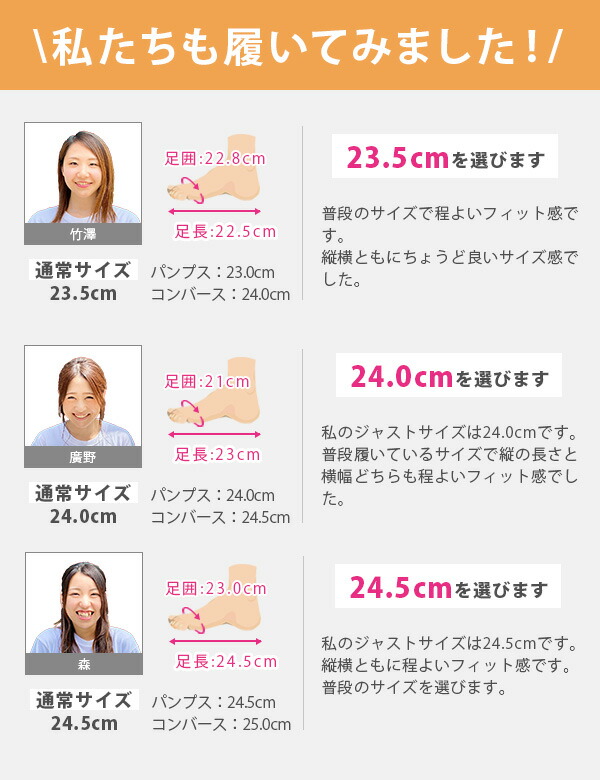 取り扱いサイズ:22.5cm 23cm 23.5cm 24cm 24.5cm 25cm