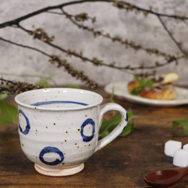 信楽焼 マグカップ 300ml(満水時)陶器 和風 コップ スープカップ おしゃれ 食器 和食器 ティーカップ 結婚祝い うたかた(青) マグカップ w405-01