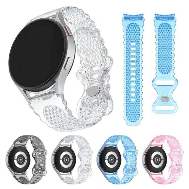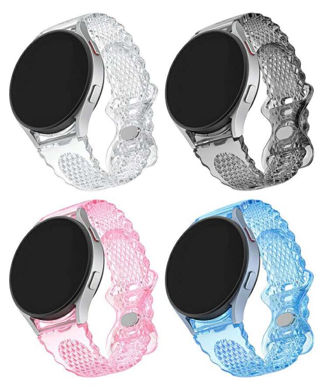 Galaxy Watch6 クリア バンド ベルト 透明 TPU バンド幅 20mm 交換リストバンド/交換バンド/交換ベルト 可愛い お洒落 かわいい エレガント レディース ギャラクシーウォッチ Galaxy Watch 6 / 6 Classic / 5 / 5 Pro / 4 / 4 Classic ソフトバンド 40mm/44mm/43mm/47mm