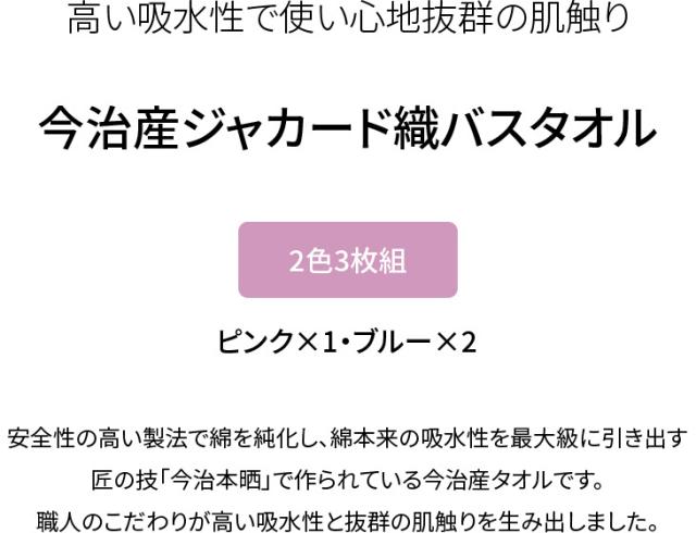 今治産 バスタオル 2色3枚セット ジャカード織 今治 タオル バスタオル 綿100% 日本製 ピンク1枚 ブルー2枚 送料無料