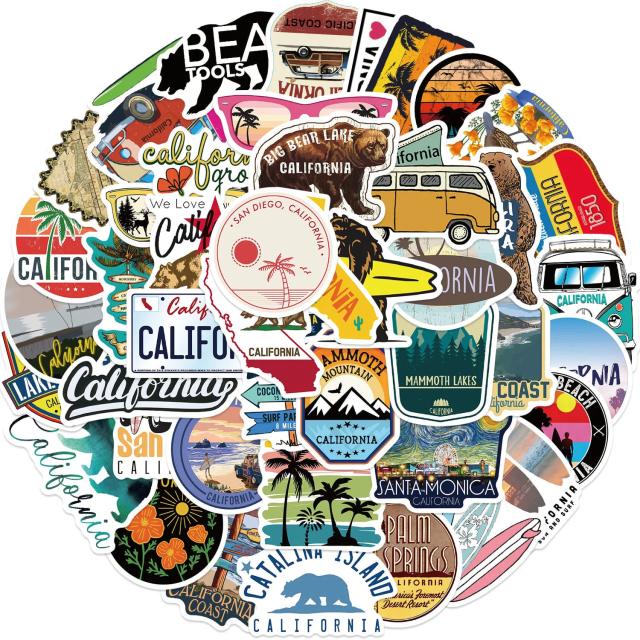 カリフォルニア ステッカー 50枚セット ラベルステッカー ブランド おしゃれ デコ キャラクター おもしろ かわいい 防水 パソコン スマホ ハワイ 自転車 バイク スーツケース ヘルメット 大量 手帳 面白い 詰め合わせ 誕生日 記念日 select ギフト プレゼント などに