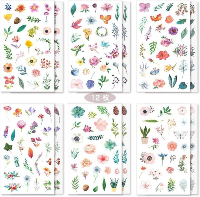花 シール 手帳シール かわいい おしゃれ 少女&子供用 和紙シール ノートシール 12枚セット DIY 手作り ステッカー 日記 ダイアリー カレンダー アルバム 家計簿 誕生日 記念日 select ギフト プレゼント などに