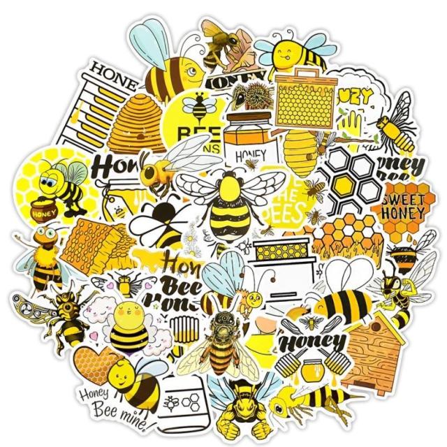 ミツバチ 蜜蜂 ステッカー 50枚セット ラベルステッカー ブランド おしゃれ デコ キャラクター おもしろ かわいい 防水 パソコン スマホ ハワイ 自転車 バイク スーツケース ヘルメット 大量 手帳 面白い 詰め合わせ 誕生日 記念日 select ギフト プレゼント などに