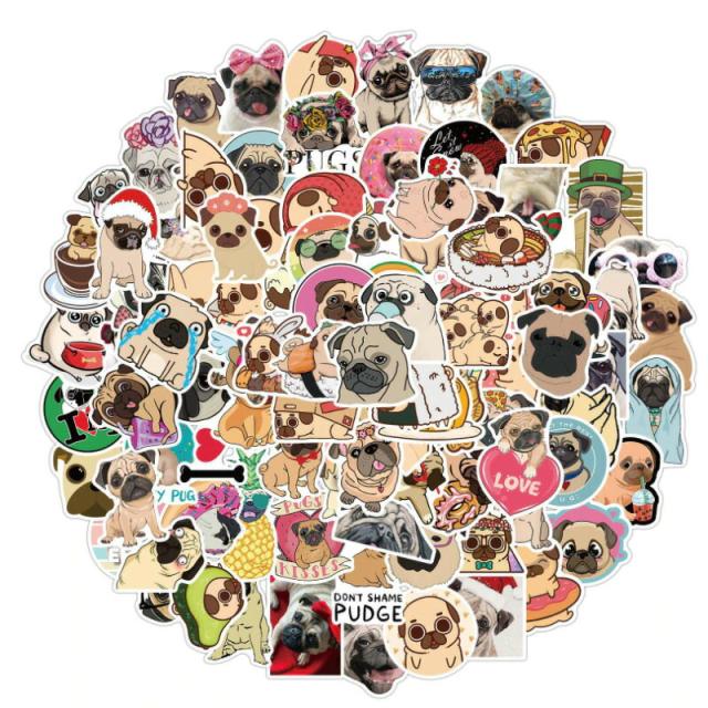 パグ ステッカー 50枚セット ラベルステッカー ブランド おしゃれ デコ キャラクター おもしろ かわいい 防水 パソコン スマホ ハワイ 自転車 バイク スーツケース ヘルメット 大量 手帳 面白い 詰め合わせ 誕生日 記念日 select ギフト プレゼント