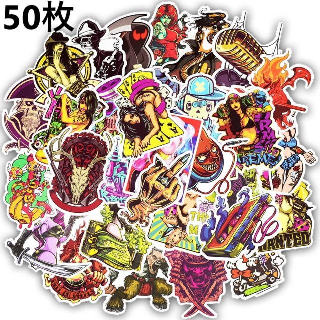 パンク ステッカー 50枚セット ラベルステッカー ブランド おしゃれ デコ キャラクター おもしろ かわいい 防水 パソコン スマホ ハワイ 自転車 バイク スーツケース ヘルメット 大量 手帳 面白い 詰め合わせ 誕生日 記念日 select ギフト プレゼント などに
