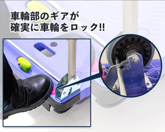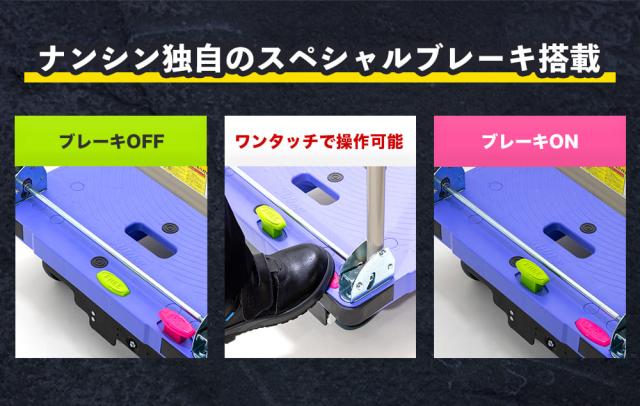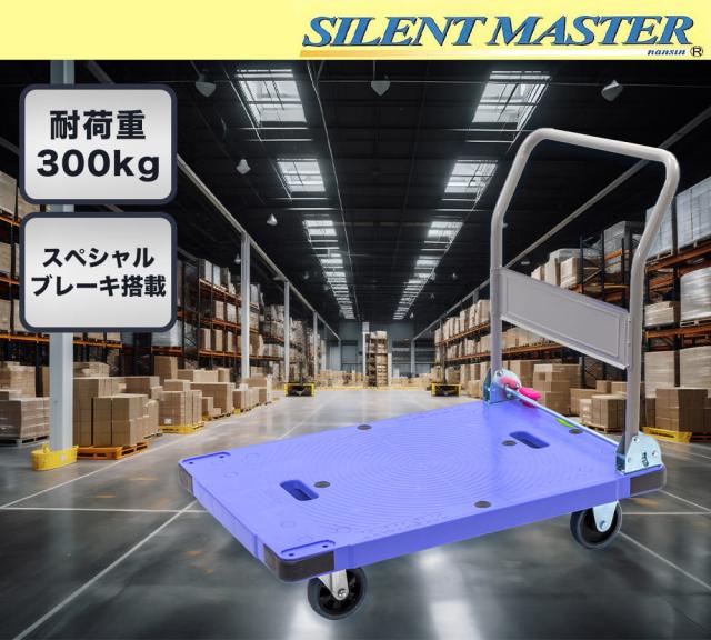 ナンシン 樹脂製運搬車 微音 プッシュブレーキ DSK-301B2 なんしん カート 台車 かご車 薄型 収納 ブレーキ付