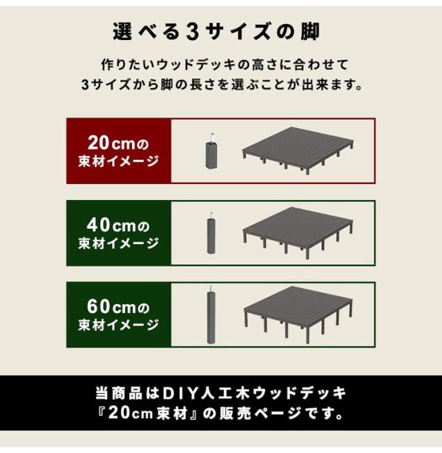 脚 木脚 人工木デッキ用 6本セット [高さ20cm] ガーデニング テラス ベランダ DIY ウッドデッキ 樹脂製 人工木 おしゃれ キット 庭 デッキ ガーデンデッキ ステージ 縁台 組立 組み立て 束材 水洗いOK(代引不可)【送料無料】