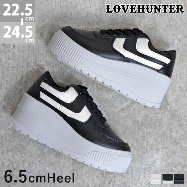 【返品交換不可】ダッドスニーカー 厚底 レディース 6.5cmヒール 柔らかい No.1537 22.5-24.5cm 黒 白 LOVEHUNTER ラブハンター