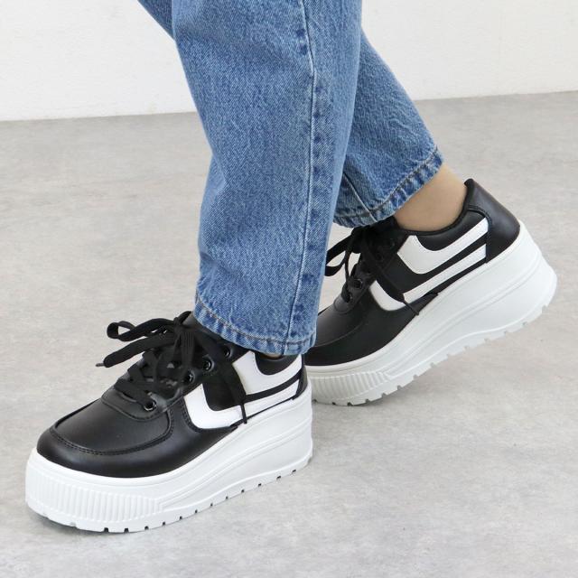 ダッドスニーカー 厚底 レディース 6.5cmヒール 柔らかい No.1537 22.5-24.5cm 黒 白 LOVEHUNTER ラブハンター