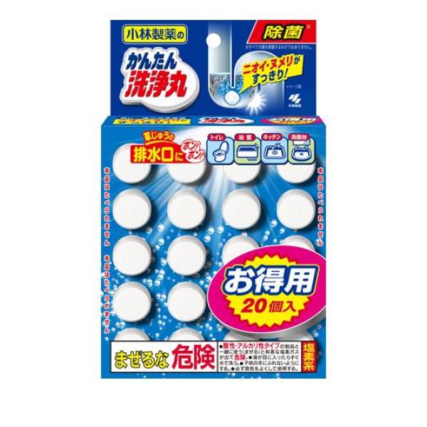 ●小林製薬のかんたん洗浄丸●ニオイの原因となる雑菌を除菌し消臭。●ツマリの原因となるヌメリを解消。●投げ入れるだけで簡単にパイプ掃除ができる。●品名:住宅用洗浄剤●用途:台所・洗面所・浴室の排水口、便器の水たまり部など●液性:弱酸性〜中性