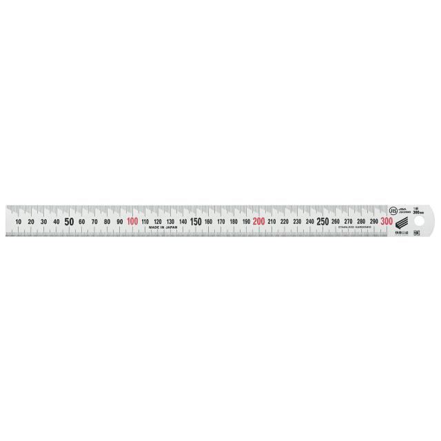 ●測定範囲(mm):0-300 ●長さの許容差(mm):±0.15 ●目盛の種類:上下段cm目 ●目盛のピッチ(mm):上段1、下段0.5 ●全長(mm):335 ●幅(mm):25 ●厚(mm):1