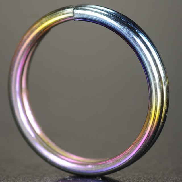 強度と耐腐食性の高いチタンで作られた二重リング。美しいレインボーメッキが施された小さなリングは、邪魔にならずあらゆる場面でご使用いただけます。