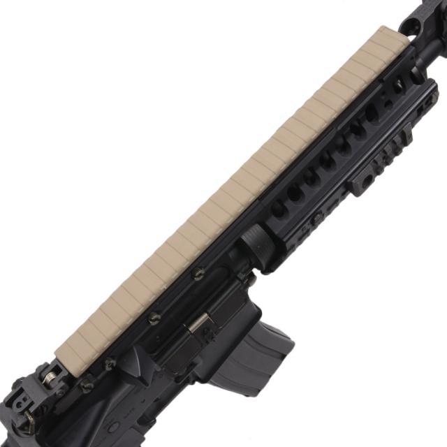 レール上面からの飛び出し量が僅かな保護レールカバーで、レールの上から嵌め込む様に装着、金属部分を全て覆い且つレールの上面から僅か約1.2mmの飛び出し量のため、ハンドガードの外周をあまり変えたくない場合に最適です。