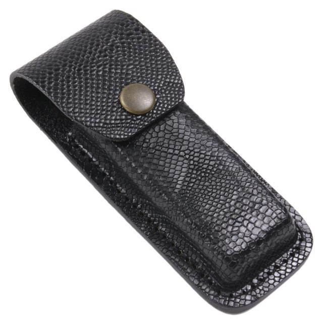 ナイフポーチ 革製 ベルトループ付 パイソン調 レザーシース [ ブラック / 大 ][sh1205]