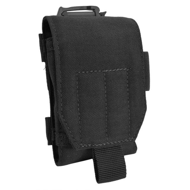背面は2本のベルクロ式のMOLLEウェビングとスリッククリップが付属しているので、ショルダーストラップやキャリアに装備が可能です。