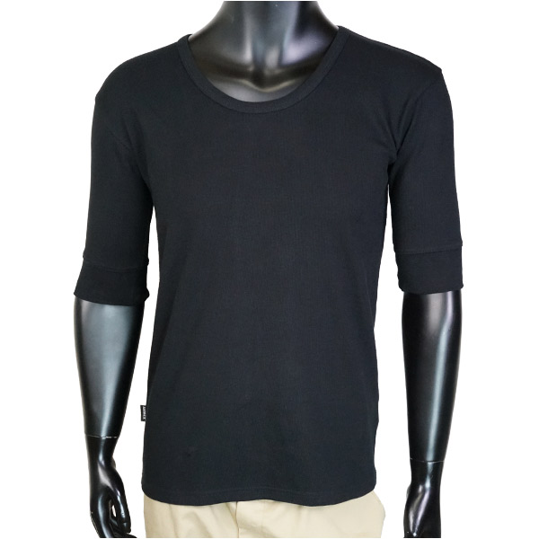 AVIREX 5分袖Tシャツ 無地 デイリー Uネック ワッフル [ ブラック / Sサイズ ][avi71058]
