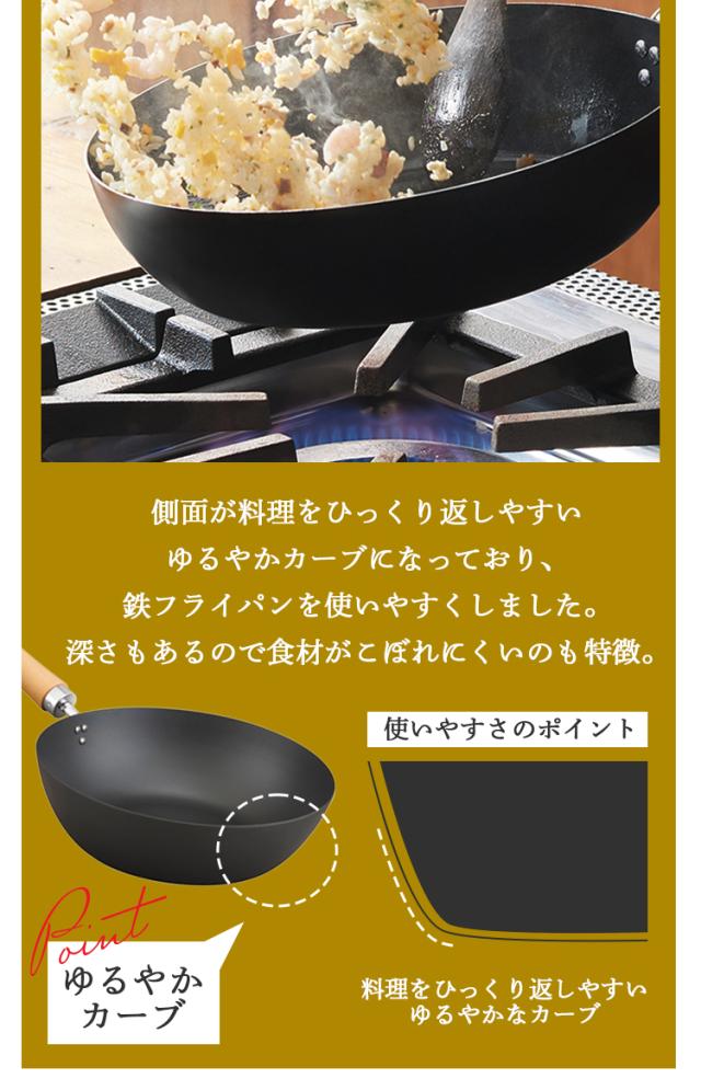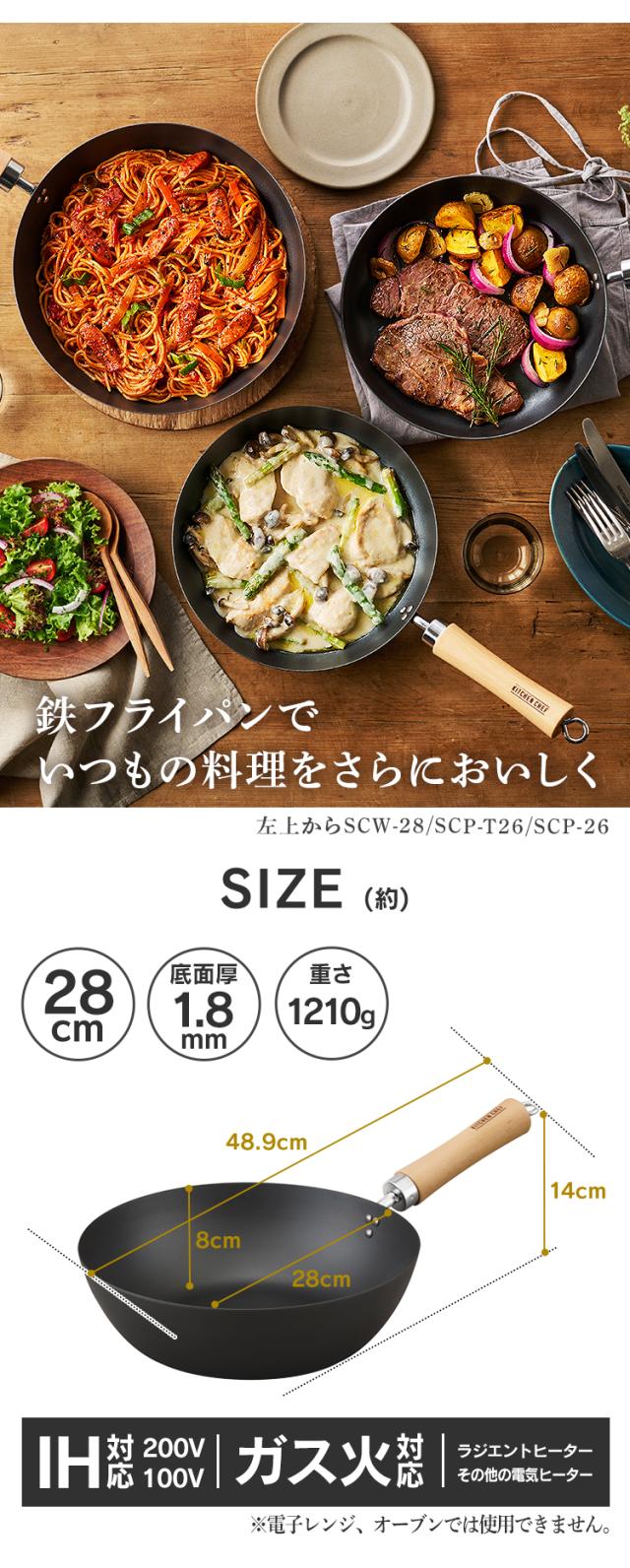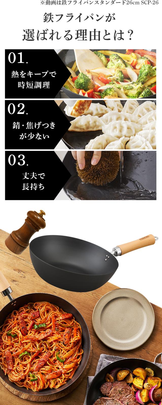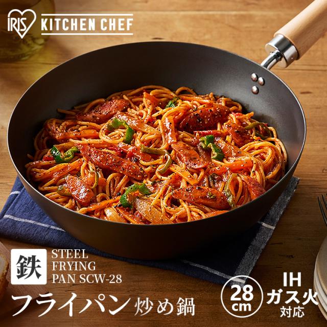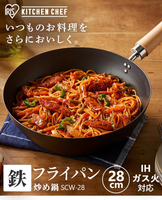 フライパン ih対応 28cm 鉄 ih アイリスオーヤマ * SCW-28 鉄フライパン 鉄製 鉄鍋 ih ガス お手入れ 簡単 熱伝導 片手鍋 丈夫 長持ち 洗いやすい 炒め鍋 焦げ付きにくい ハンドル 取っ手 木製 調理器具 高温調理 鍋 中華鍋 母の日