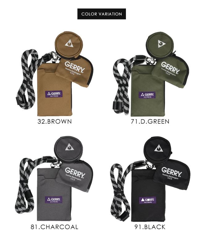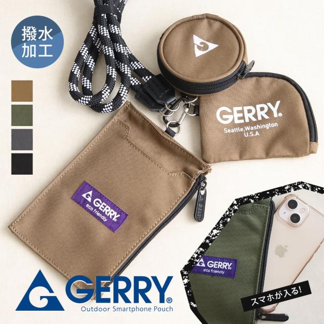 gerry スマホポーチ アウトドア ショルダー レディース メンズ スマホショルダー 縦型 おしゃれ コインケース レジャー キャンプ アウトドア ジェリー トリプルケースストリングショルダー 黒 ブラック グレー チャコール ダークグリーン オリーブ カーキ ブラウン r1714