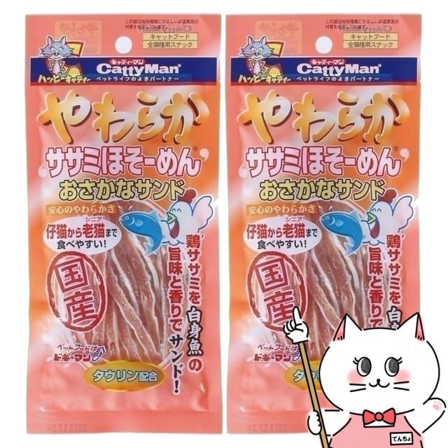 ・ササミを白身魚でサンドした愛猫がよろこぶやわらかなおやつ。・仔猫から老猫(シニア)まで食べやすい、安心のやわらかさです。・ササミに白身魚、愛猫が大好きな旨味と香りをあわせました。・食べ物にうるさい愛猫もよろこぶやわらかな口あたりです。・愛猫に特に必要な栄養素、タウリンを配合した猫用の国産おやつ。