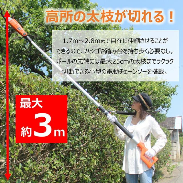 高枝切り電動チェーンソー3 プラス JPYFEPS0725 チェーンソー 電動 伸縮 172〜287cm 角度調整 ![]() ![]() ![]() ![]() | ||||