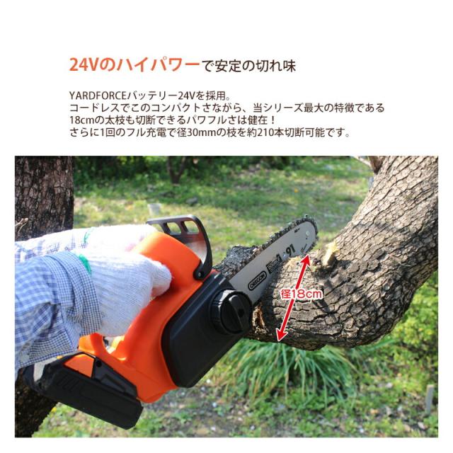 24Vハンディチェーンソー LS-C18-JP ヤードフォース チェーンソー 小型 電動 バッテリー式 ![]() ![]() ![]() ![]() ![]() | ||||