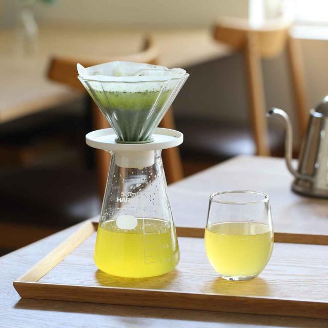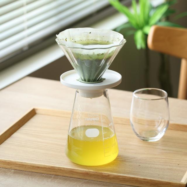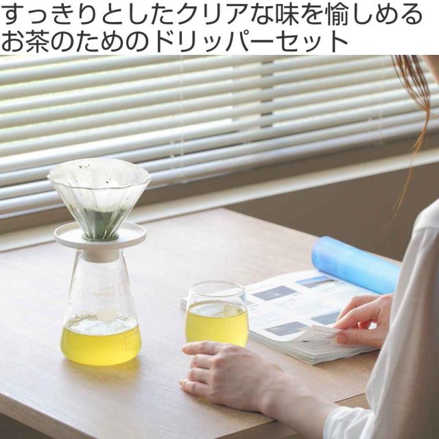 お茶のためのドリッパーセットです。ペーパーフィルターを使ってドリップするのですっきりとしたクリアな味わいのお茶を愉しめます。お茶の色がキレイに見えてテーブルを彩ります。