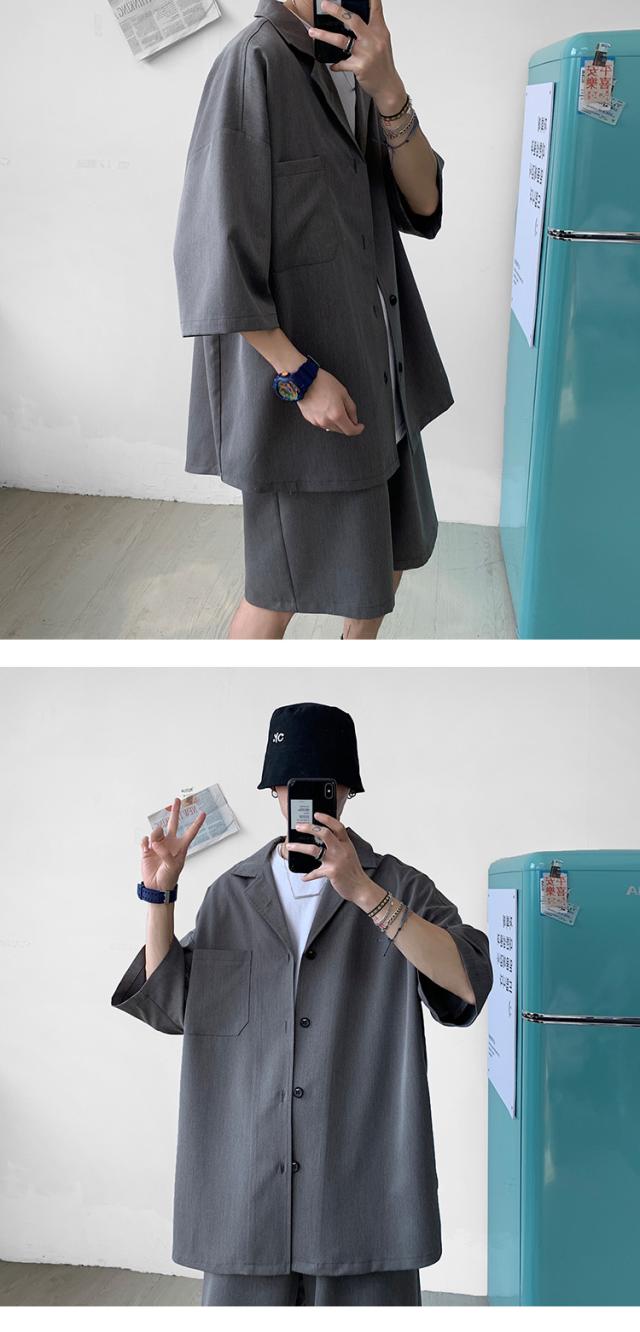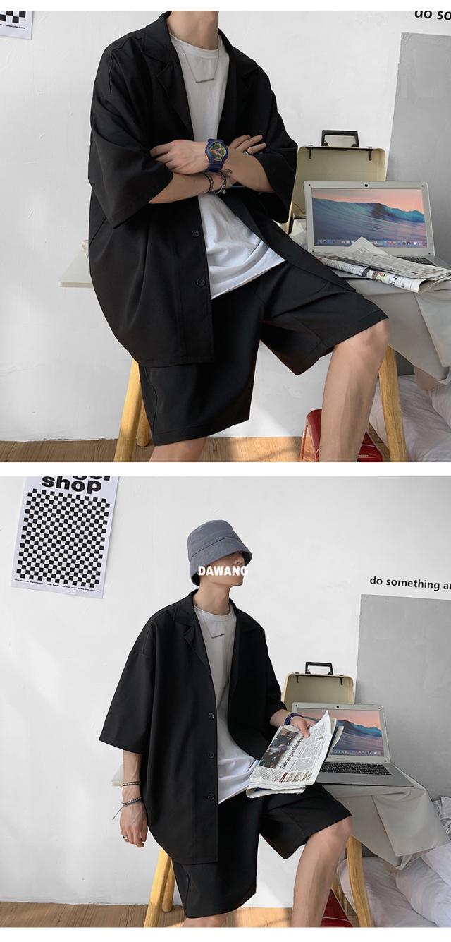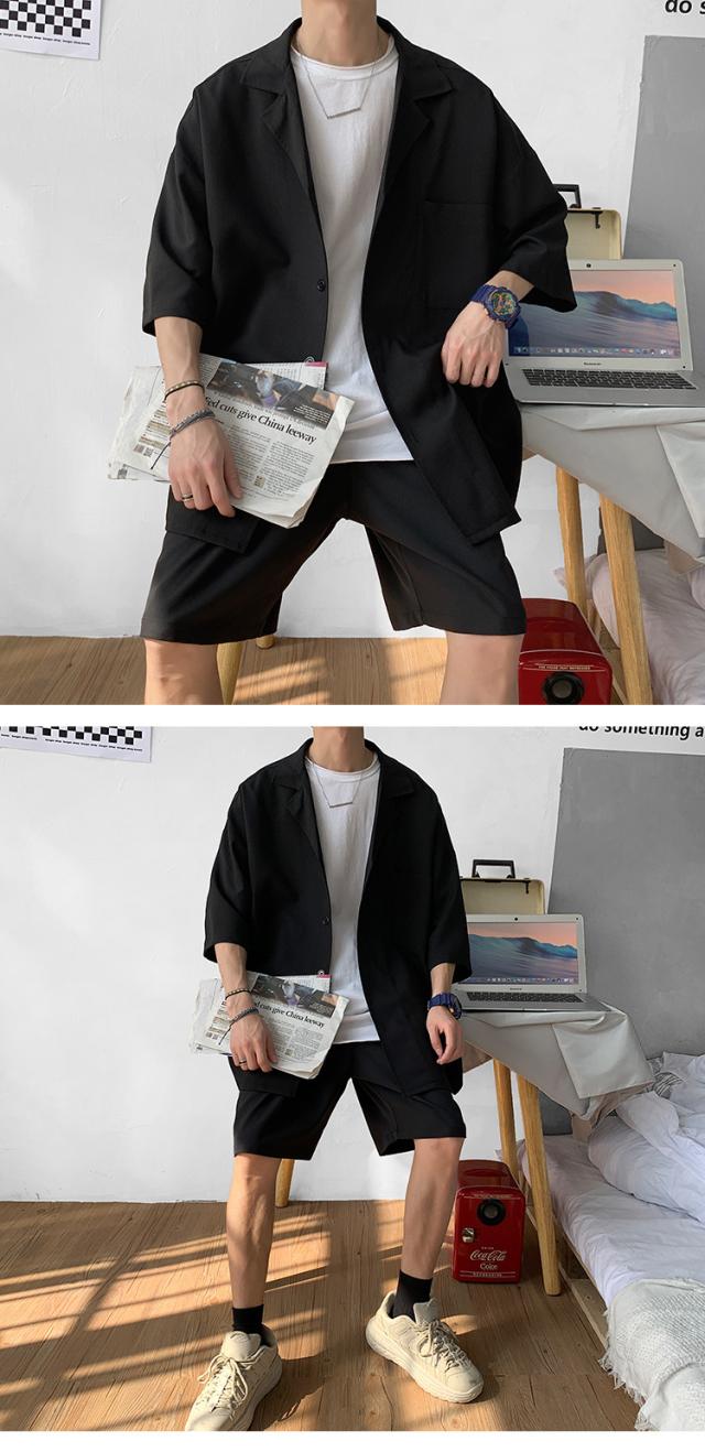 セットアップ メンズ ジャージ 夏物 7分袖 前開き トップス ショートパンツ 上下セット ストリート系 部屋着 トレーニング スポーツ 大きいサイズ カジュアル