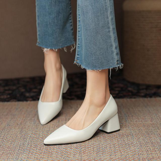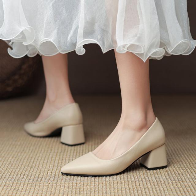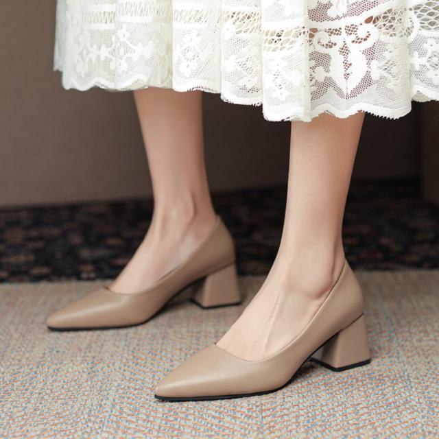 ポインテッドトゥ パンプス 痛くない 5.5センチ ヒール チャンキーヒール レディース シューズ 歩きやすい ハイヒール 走れる 脱げない 大きいサイズ 就活 通勤 オフィス フォーマル ママ OL 結婚式