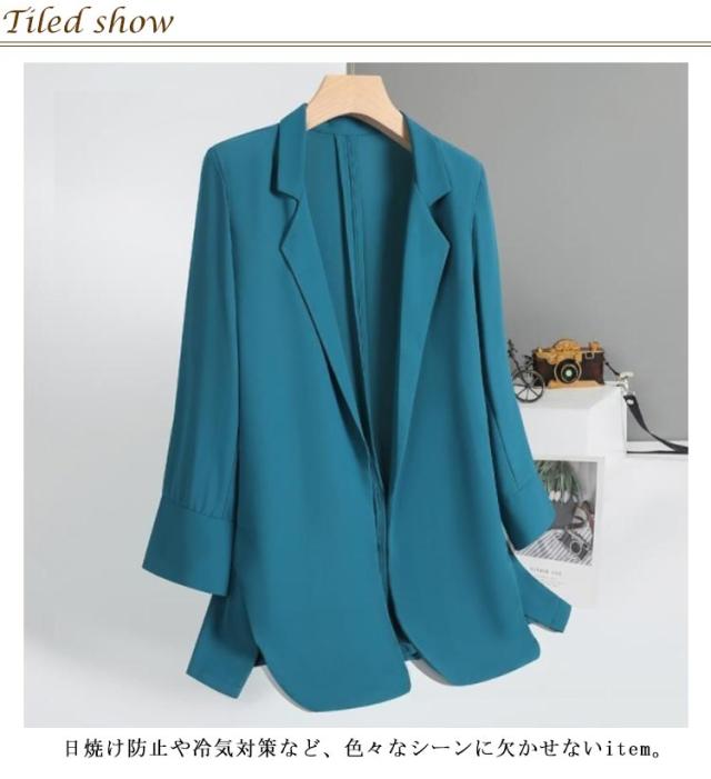 サマージャケット レディース サマーカーディガン 送料無料 ノーボタン カーディガン ジャケット 日焼け防止 日除け 長袖 羽織り アウター テーラードジャケット 薄手 春 夏 秋