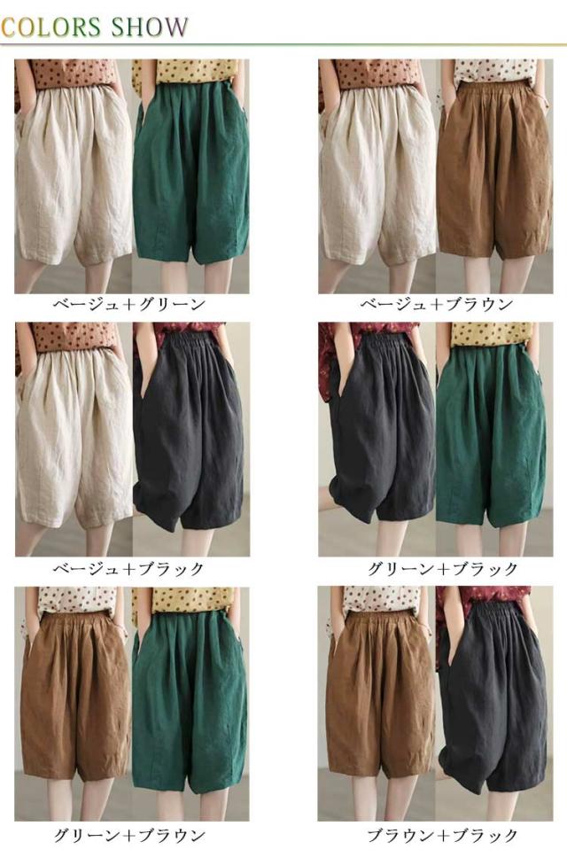 サルエルパンツ 5分丈 ハーフパンツ 大人 レディース ガウチョパンツ 2点セット ショートパンツ サルエル パンツ 綿麻 リネン アラジンパンツ ワイドパンツ バルーンパンツ コクーンパンツ ボトムス きれいめ ウエストゴム 春 夏 ボトムス 大きいサイズ 送料無料
