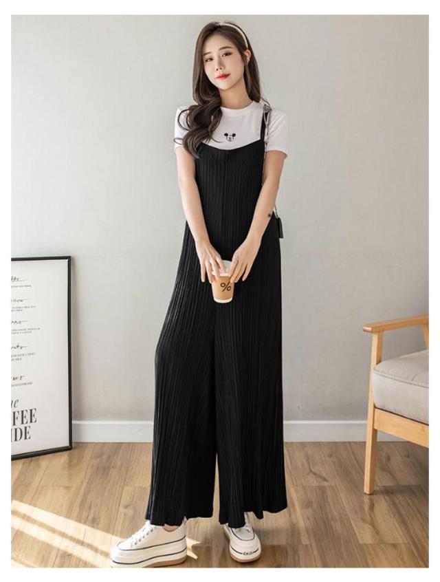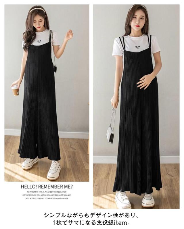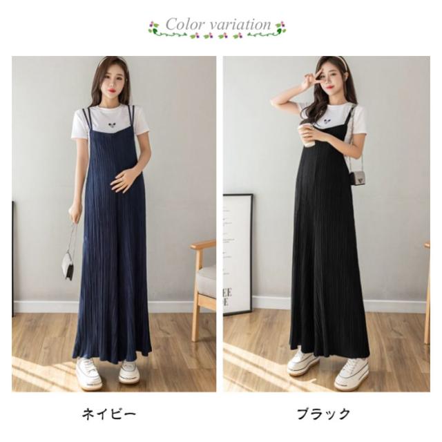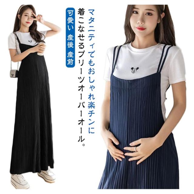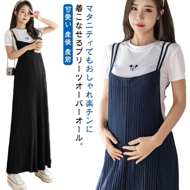 サロペットパンツ マタニティウェア プリーツパンツ レディース プリーツオーバーオール ゆったり プリーツサロペットワイドパンツ 産後 産前 プリーツ サロペット ワイドパンツ オールインワン