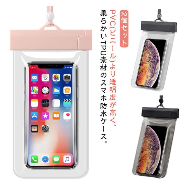 2枚セット スマホ用 防水ケース 完全防水 IPX8 指紋認証 Face ID認証対応 完全保護 防水携帯ケース タッチ操作可能 顔認証 水中撮影 スマホ防水ケース iPhone Android