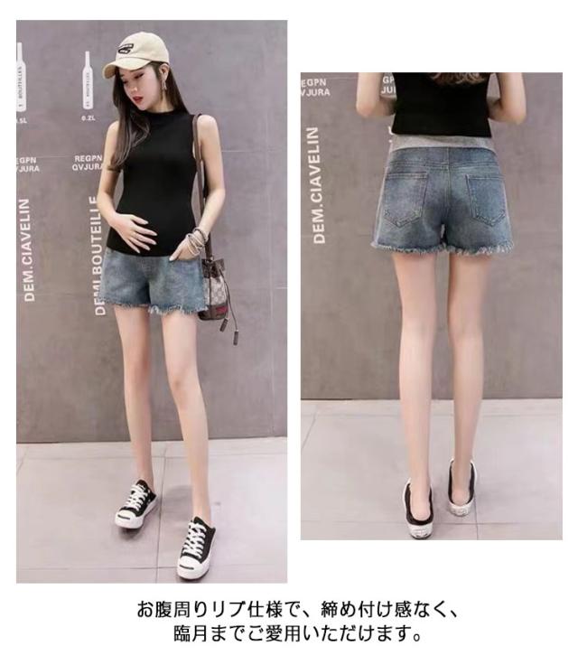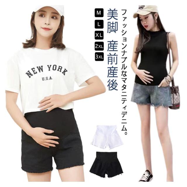 マタニティパンツ マタニティ ショートパンツ デニムパンツ マタニティ ハーフパンツ 美脚 ダメージ 裾カットオフ 美脚 産前産後 ボトムス ショート パンツ 大きいサイズ 出産祝い 妊娠 妊婦 妊婦服 妊娠中 夏 夏服