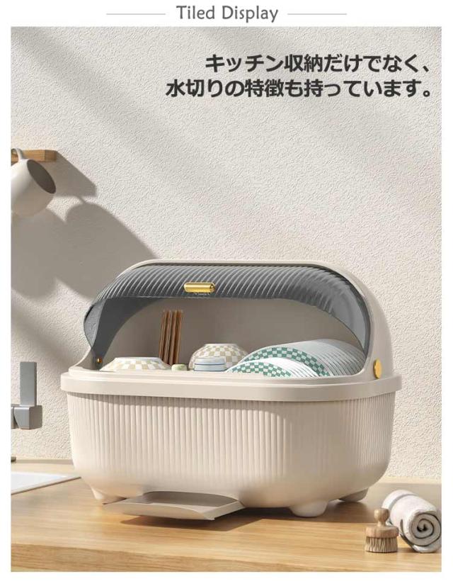 水切りラック 食器収納 食器棚 キッチン収納 フタ付き 箸立て付き 北欧風 大容量 食器乾燥ボックス 食器保管 水受けトレー付き 引き出し式 蓋付き 透明 食器ドレンバスケット キッチン収納 タテ置き 防塵 防虫 水切りカゴ お茶碗収納ボックス ギフト 送料無料