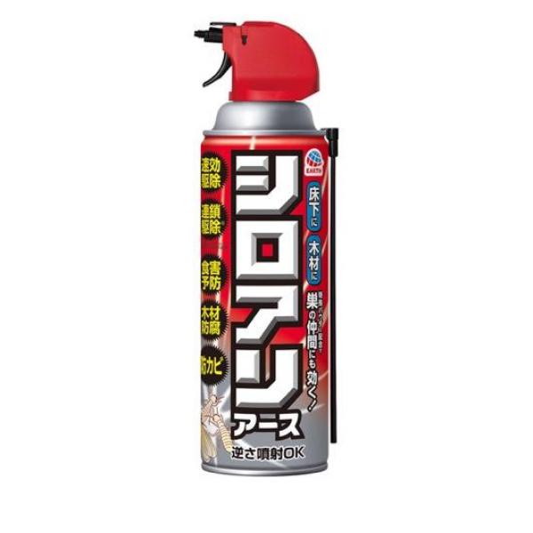 | 製品の特徴 | ●シロアリ(白蟻)駆除と侵入防止効果を持った、シロアリ専用のエアゾール。●プロが使う速効性と持続効果にすぐれたシロアリ駆除成分ビフェントリンを配合。●特殊パウダーの連鎖駆除効果(※1)で巣にいる仲間のアリにも効果を発揮します。●12ヵ月間(※2)、食害予防効果が続くので長期間シロアリをよせつけません。●プロが使う木材防腐成分(シプロコナゾール)配合。●防カビ成分配合。●すき間ノズルで、狭いすき間にも簡単に噴射できます。●逆さにしても噴射でき、ジェット噴射で床下も簡単に処理できます。※1:薬剤に接触したシロアリと共存するシロアリが致死する効果※2:使用環境により異なります |