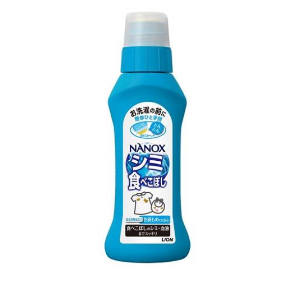 ●ライオン トップ NANOX(ナノックス)シミ用●洗濯機で洗う前にシミ汚れに直接塗れば、あとは洗濯機まかせでしつこい汚れをすっきり落とす、便利で効果的な衣類の部分洗い剤。●漂白成分に洗浄成分を加えた“漂白洗浄成分”により、ミートソースなどの油汚れや口紅の汚れに高い効果を発揮します。●汚れに直接塗布できるので液が浸透しやすく、さらに、塗布部は生地を傷めません。●酸素系漂白剤なので、色柄物やきなりの衣類、おしゃれ着にも安心して使えます。●品名:衣料用漂白剤●用途:水洗いできる白物、色柄物の繊維製品(綿、麻、化学繊維、毛、絹)の食べこぼし、血液(水洗いしてから)、口紅、黒ずみ等のしみ汚れの漂白●液性:弱酸性