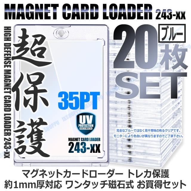 マグネットローダー 磁石式 [ブルー20枚セット] カードローダー UVカット カード保護 透明 トレカ保護収納ホルダー 約1mm厚対応 送料無料 ポケカ 遊戯王 MTG デュエマ ウィクロス ワンピース トレーディングカード コレクション 管理 保管 保存 展示 ハード プラスチック