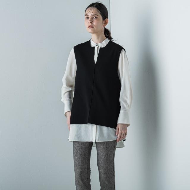 季節の変わり目に活躍してくれるシンプルなニットジレ。