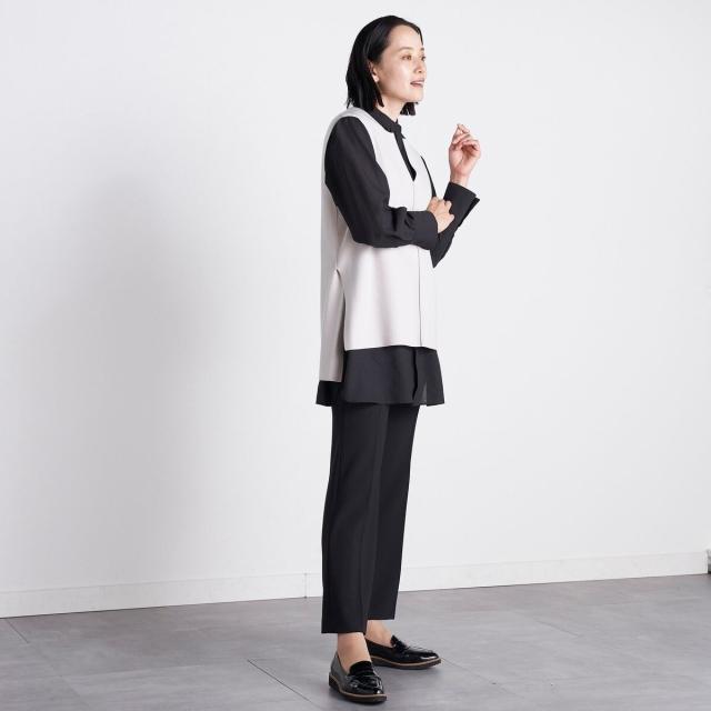 長袖のブラウスからTシャツなど気温に合わせてインナーを変えることで長いシーズン楽しんで頂けます。