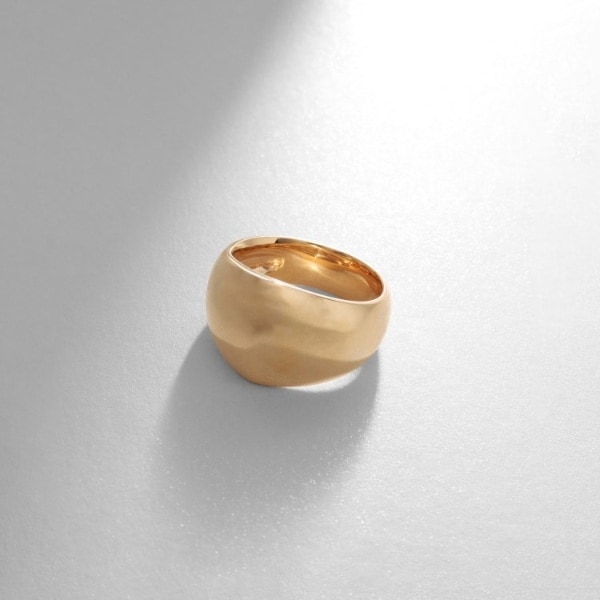 トレンドの大ぶりリングは稜線をうっすらと出した柔らかい表情が魅力的。